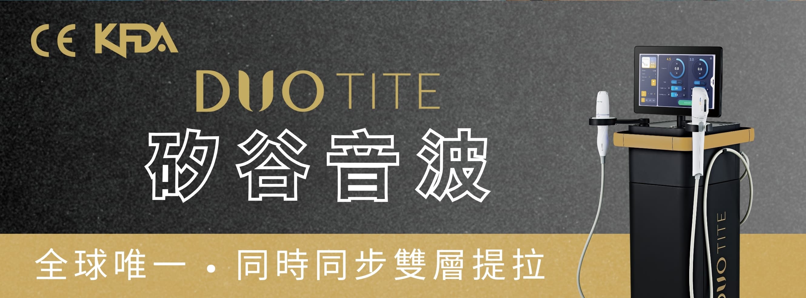 Duo Tite矽谷音波是一種新型高強度聚焦超聲(HIFU)拉提緊膚療程,主打「一次同時針對兩個老化關鍵層」的雙層定位技術,將能量同步作用於SMAS筋膜層與深層真皮層,在一次療程中同時完成輪廓拉提與膠原再生緊緻。